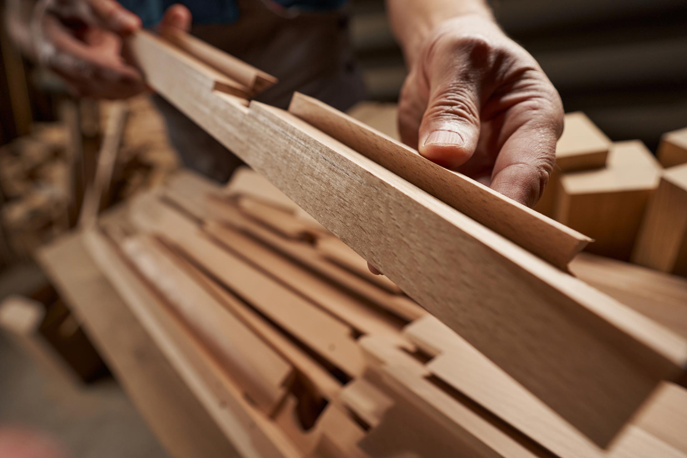 Unser Team versteht Holz als lebendiges Material, das Können, Geduld und Genauigkeit verlangt. Durch die Kombination aus traditioneller Fertigung und digitaler Präzision entstehen Möbel die zeigen, was echte Maßarbeit bedeutet.